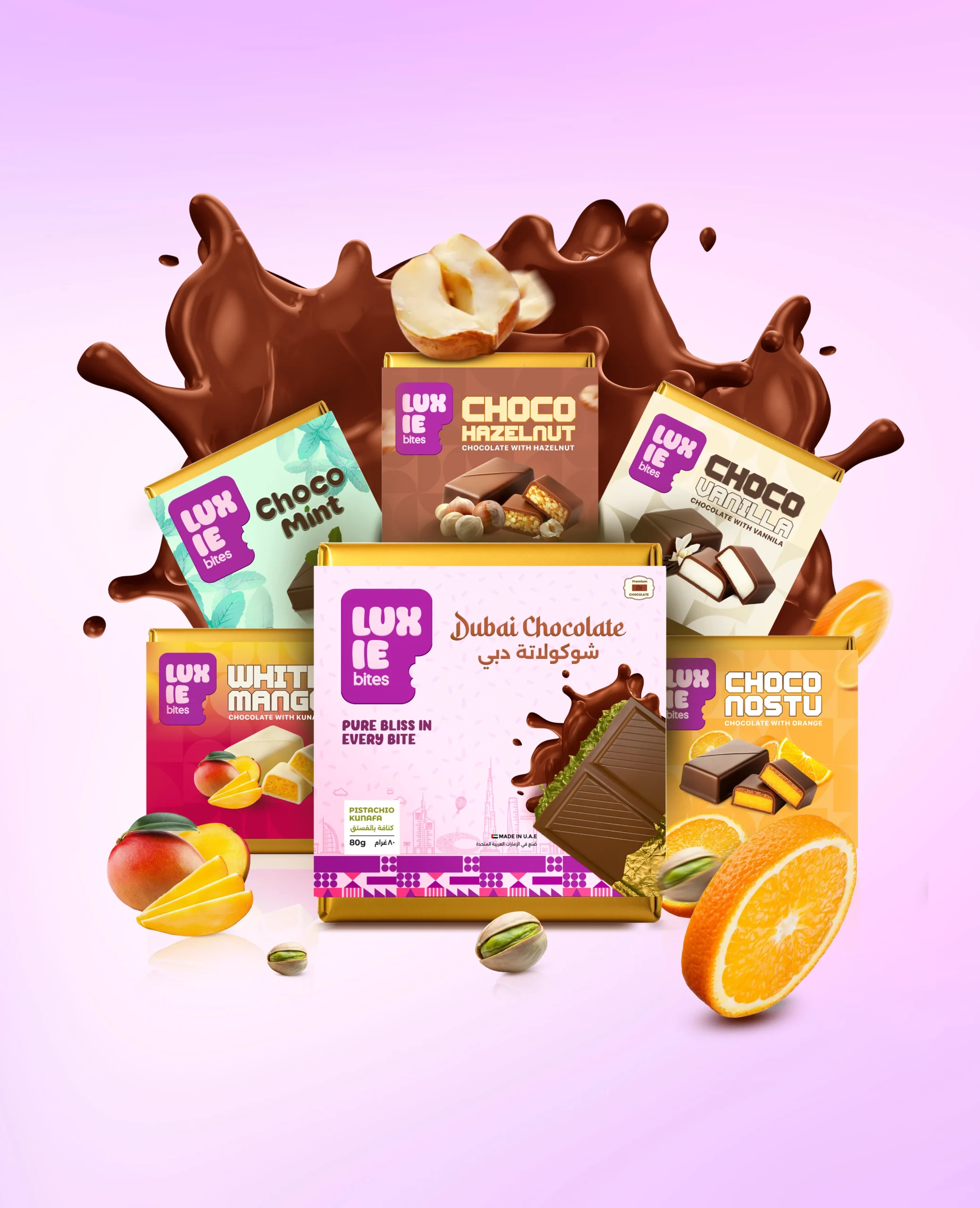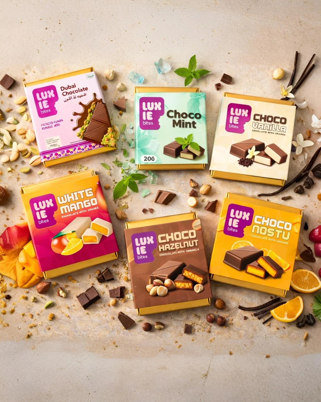 we believe chocolate should do more than just taste good — it should feel memorable. Born in the UAE and inspired by bold, modern flavors, LUXIE BITES brings together premium chocolate craftsmanship and creative flavor pairings designed for today’s indulgent lifestyle.